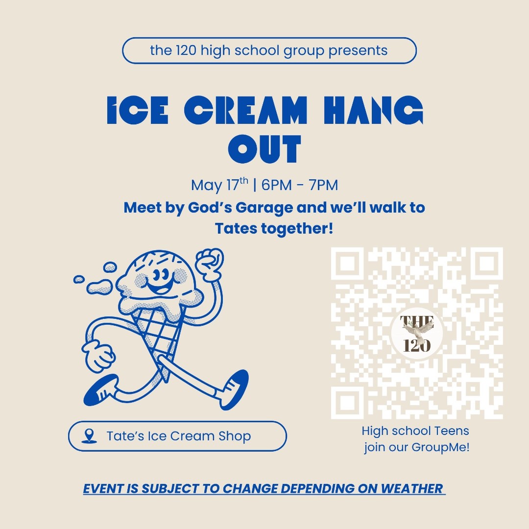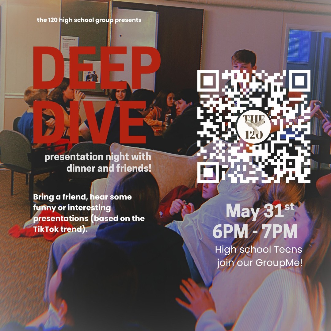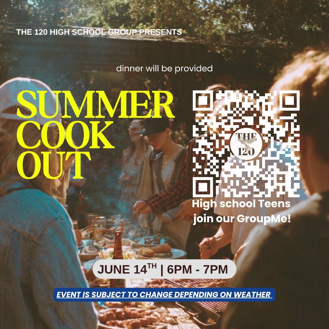 Here you will find all of the upcoming events for The 120. All high school teens, no matter where they are in their faith, are invited to join us! Want to donate to help us with our dinners for our ministry? You can donate here!